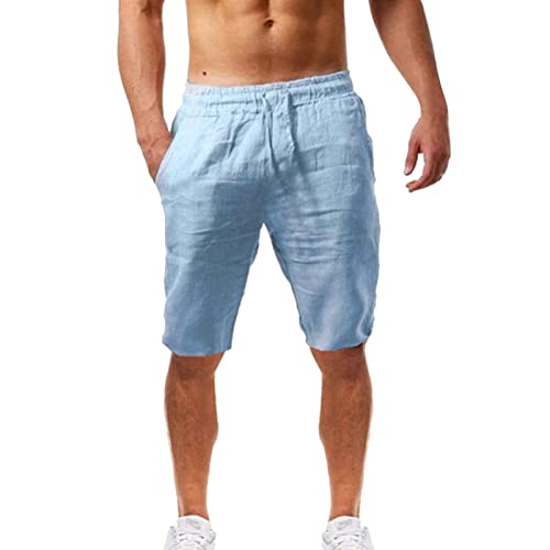 2023 En Casual Shorts Katoen Mannen Linnen Effen Zomer Modieuze Mannen Broek Mens Rave Shorts, Blauw, S